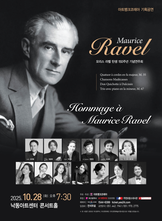 프랑스 작곡가 모리스 라벨(사진) 탄생 150주년을 기념하는 연주회가 부산 강서구 낙동아트센터에서 열린다.