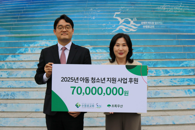 아동옹호대표기관 초록우산 어린이재단 부산지역본부(부울경총괄본부장 이수경)는 수영로교회(담임목사 이규현)가 최근 2025년도 사회공헌기금 7000만 원을 후원하고 전달식을 진행했다고 밝혔다. 그동안 꾸준한 나눔을 이어온 수영로교회는 올해에도 지역의 가장 어려운 아동·가정 지원을 위해 뜻을 모았다.