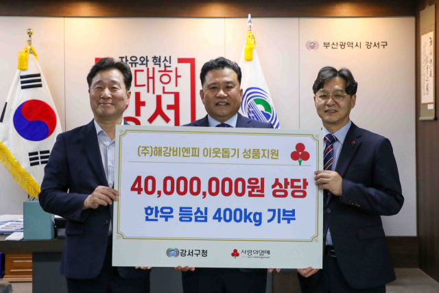 (주)해강비엔피는 육류 가공 및 제조를 전문으로 하는 식품업체로 설립 이후 부산과 경남 지역 소외계층에 꾸준히 육류를 기탁해 왔다. 올해 추석을 앞두고 7500만 원 상당의 육류를 부산사랑의열매에 기탁한 데 이어 이날 기탁된 4000만 원 상당의 1등급 한우 등심 400kg은 강서구 지역에 있는 11개 사회복지시설에 지원됐다.
