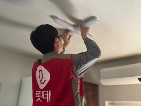 이번 봉사활동은 지난주 차렵이불을 전달하며 안부를 확인한 가구 중 한 곳을 대상으로 실시했다. 샤롯데봉사단 양삼사랑나눔팀은 노후화된 조명을 LED 조명으로 교체하고 실내 정리도 도와주며 나눔을 실천했다.