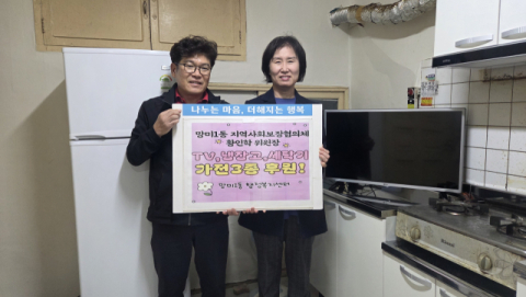 부산 수영구 망미1동 행정복지센터(동장 김정희)는 27일 망미1동 지역사회보장협의체 황인학 위원장이 관내 신체정신적 건강 및 생계에 어려움을 겪고 있는 복지 사각지대 가구에 (중고)TV, 냉장고, 세탁기 등 생활 필수 가전을 지원하며 따뜻한 나눔을 실천했다고 밝혔다.