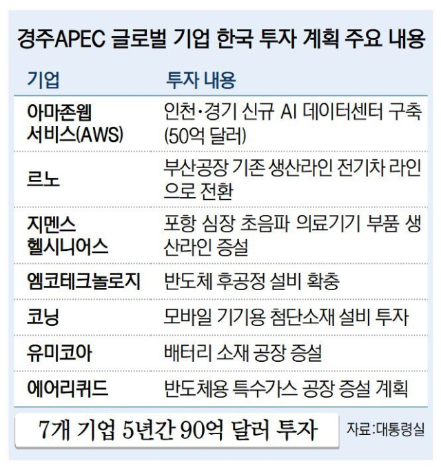 투자 보따리 들고 온 글로벌 기업 7곳… 한국에 5년간 13조 ‘통 큰 선물’ 약속 [2025 APEC]