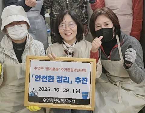 부산 수영구 수영동 행정복지센터(동장 강두리)는 29일 관내 저소득 독거어르신의 열악한 주거환경을 개선하는 ‘안전한 정리’ 사업을 추진했다고 밝혔다.