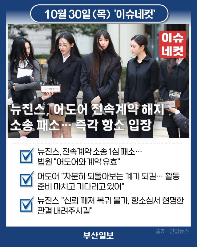 뉴진스, 어도어 전속계약 해지 소송 패소… 즉각 항소 입장