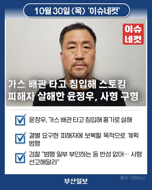 아파트 가스 배관 타고 침입해 스토킹하던 여성 살해한 윤정우, 사형 구형