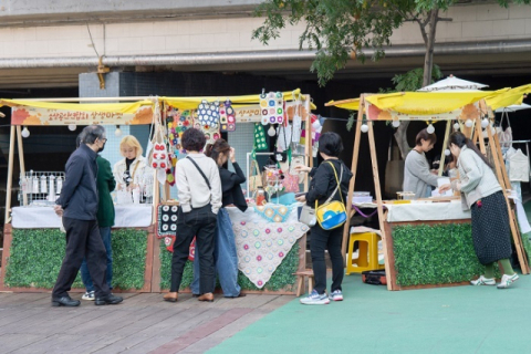 ‘상생마켓’은 다양한 판매자들이 참여하여 액세사리, 수제가방, 양말, 키링, 가죽제품 등 수공예품을 판매하고 캐리커처, 키링 만들기 등 체험부스 및 목공조각을 활용한 어린이 놀이시설‘상상놀이터’도 함께 운영했다.