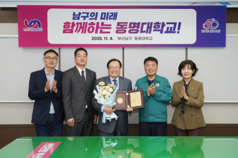 동명대학교(총장 이상천)는 4일 부산 남구청 청장실에서 지역사회 협력과 체육문화 확산에 기여한 공로로 남구청으로부터 감사패를 수상했다고 밝혔다.