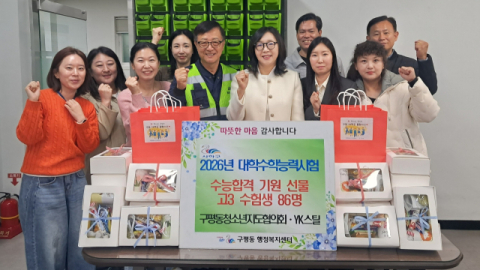 부산 사하구 구평동 청소년지도협의회와 YK스틸은 지난 5일 수능합격기원 선물(찹쌀떡, 초콜릿 등)을 구평동 행정복지센터에 전달했다고 밝혔다.