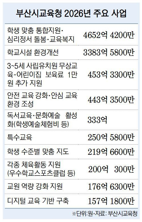 김석준 부산시교육감은 “2026년도 예산안은 AI와 디지털 시대를 대비해 학생 개개인을 위한 맞춤형 학력 향상과 정서 지원을 강화하고 안전한 교육 환경을 구축하는 데 중점을 뒀다”며 “학생과 교직원이 함께 성장하는 교육 환경을 만들겠다”고 말했다.