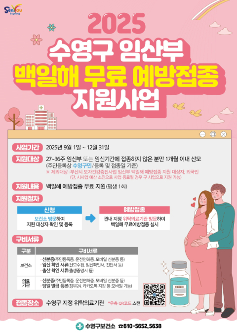수영구, 임산부 백일해 무료 예방접종 지원한다