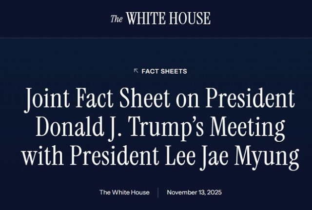 14일 백악관 홈페이지에 올라온 ‘트럼프 대통령과 이재명 대통령 회담 공동팩트시트’를 보면 새로운 내용보다는 그동안 양국 정부가 설명했던 관세, 대미 투자, 군사·안보 등 분야 합의 내용이 분야별로 정리됐다.