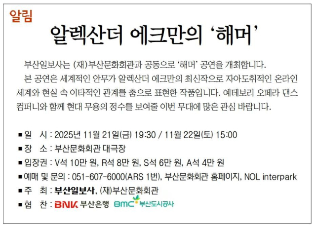 ■예매 및 문의 : 051-607-6000(ARS 1번), 부산문화회관 홈페이지, NOL interpark
