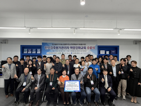 국립한국해양대학교(총장 류동근)는 지난 15일 부산 동구 상떼빌딩 교육장에서 조선해양기자재산업분야 탄소프로파일러 양성을 위한 ‘탄소감축평가관리자 역량강화교육’ 수료식을 진행하고 수료자 38명에게 수료증을 수여했다고 밝혔다.