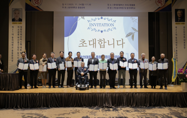 동의대학교 총동문회(회장 강병령·광도한의원 대표원장)는 지난 24일 롯데호텔부산 크리스탈볼룸에서 ‘2025년 정기총회와 회장 이·취임식’을 가졌다.