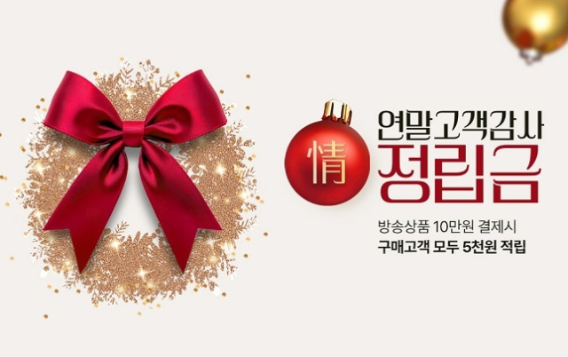 방송 상품을 10만 원 이상 구매한 고객 전원에게 적립금 5000원을 지급하는 행사다. 적립금은 12월 31일 지급 예정이며, 내년 1월 1일부터 60일 내 사용할 수 있다.