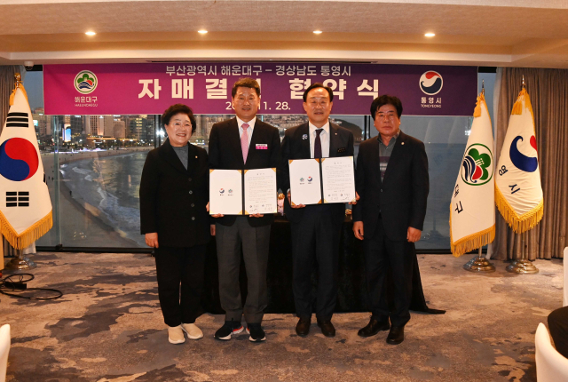 해운대구(구청장 김성수)는 지난달 28일 경상남도 통영시(시장 천영기)와 경제·문화예술·관광·교육 분야 등 다양한 분야에서 공동 상생발전을 위한 교류 협력사업을 추진하는 자매도시 결연 협약을 체결했다.