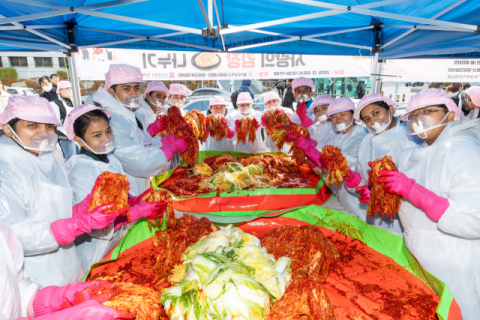 참여자들은 이날 1시 30분부터 3시간여 동안 배추에 양념을 버무리며 총 1400KG의 김장김치를 담궜다.