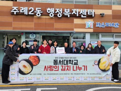 김영민 주례2동장은 “한 해 동안 여러 차례 지역을 위해 나눔을 실천해 준 동서대학교 총학생회에 깊이 감사드린다”며 “전달받은 김치는 도움을 필요로 하는 가정에 소중히 전달하겠다”고 말했다.