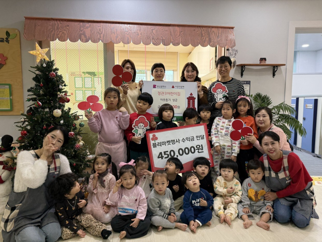 정관3어린이집 원생과 교직원들은 지난 12일 플리마켓 수익금을 모아 부산사회복지공동모금회(회장 이수태·부산사랑의열매)에 이웃돕기 성금으로 45만 원을 전달했다.