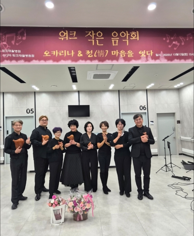 한국오카리나지도자교육협회(회장 이정미)는 연말 맞이 나눔 실천을 위해 지난 13일 부산 동래구 안락동 위크재활병원을 방문해 환우들을 위한 작은음악회를 개최했다.