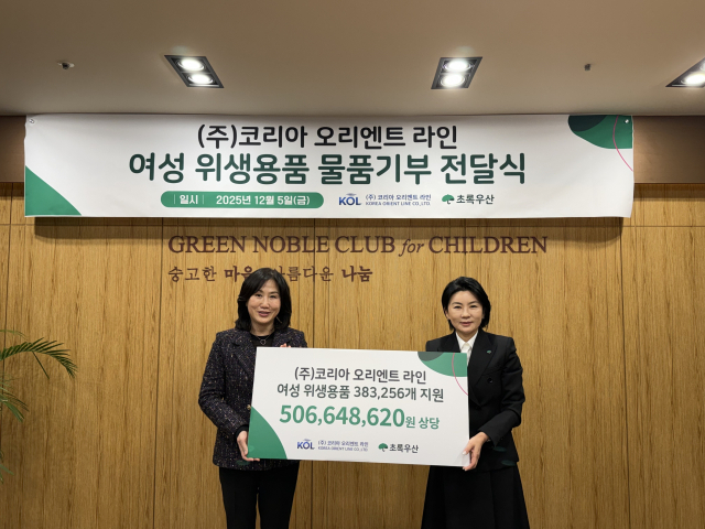 항만물류 기업인 (주)코리아오리엔트라인은 지난 5일 초록우산을 방문해 5억 664만 8620원에 달하는 여성 위생용품 38만 3256개를 후원했다. 이날 전달식에는 (주)코리아오리엔트라인 김빅토리아 대표이사가 직접 참석해 기업의 사회적 책임을 실천하려는 깊은 의지를 전했다.
