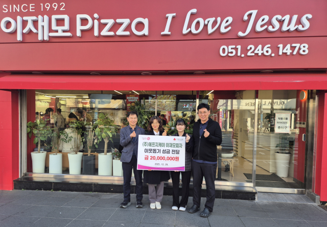 (주)에프지케이 이재모피자(대표 김익태)는 지난달 29일 부산 중구(구청장 최진봉)에 취약계층 가구당 10만 원씩 180가구에 난방비와 장애인협회 후원 성금 등 총 2000만 원을 기탁했다.