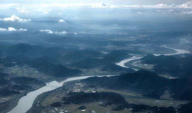 최근 교수신문이 선정한 2025년 올해의 사자성어는 ‘변동불거’(變動不居)로, ‘한 곳에 머물지 않고 끊임없이 변한다’는 의미를 담고 있다. 실제 대한민국은 지난 한 해 엄청난 변화의 소용돌이 속에 있었다. 하지만 만절(萬折)로 굽이치는 물길도 결국 바다로 흘러가듯 대한민국 역시 변동불거의 혼란 속에서도 다시 민주주의를 회복했고, 2026년 새해에는 더 나은 미래를 향해 나아갈 것임에 분명하다. 경남 김해 상공에서 바라본, 굽이치는 낙동강 모습.