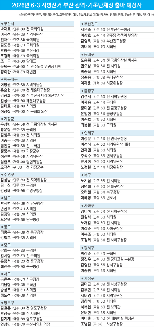 부산 단체장 누가 뛰나