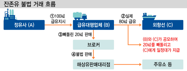 보고서는 선박용 기름 불법 거래 추정 규모를 2024년 기준 45만~60만kL로 봤다. 보고서는 세수 1000억 원 이상이 손실되고 있는 것으로 추산했다.