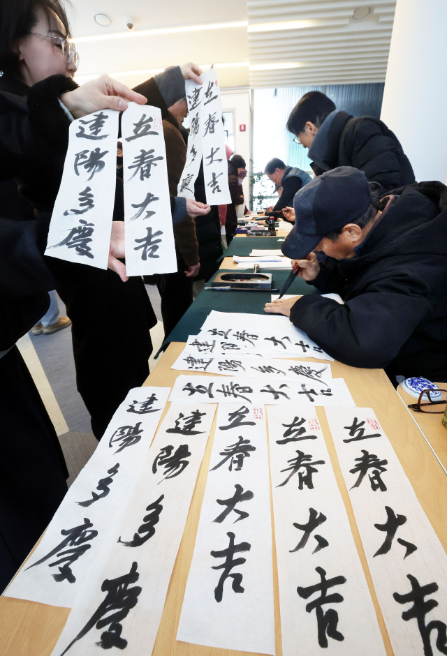 24절기의 첫 번째 절기인 입춘(立春)을 앞두고 한 해의 행운과 건강을 기원하는 ‘입춘방 나눔행사’가 22일 오전 부산 남구 대동골문화센터에서 남구문화원 주최, 남구서예회 주관으로 열렸다.