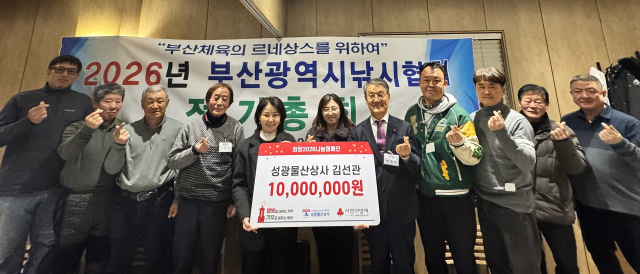 부산사회복지공동모금회(회장 이수태·부산사랑의열매)는 지난달 22일 2026년 부산광역시낚시협회 신년회에서 성광물산상사(회장 김선관)의 이웃사랑 성금 전달식을 진행했다고 밝혔다.