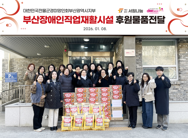대한민국전몰군경미망인회 부산시지부(지부장 박은주)는 지난달 8일 부산장애인직업재활시설(시설장 오효미)에 서원유통에서 기증 받은 설명절 사랑의 후원물품 쌀 20포와 라면 30박스 등을 전달했다.