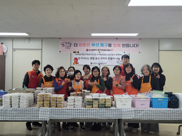 부산 중구자원봉사센터(센터장 장미영)는 SK해운해상가족봉사단(단장 임미경), SK해운연합노동조합(위원장 김두영)과 함께 지난 3일 중구 취약계층을 대상으로 설 명절음식 나눔 행사를 진행했다.