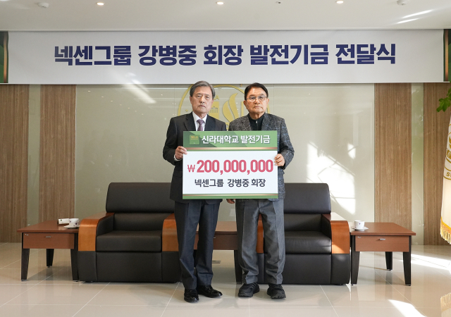 신라대학교(총장 허남식)는 넥센그룹 강병중 회장이 대학 발전과 인재 양성을 위해 발전기금 2억 원을 기탁했다고 밝혔다.