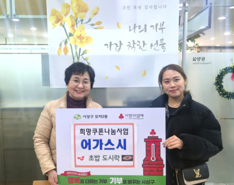 이계임 모라3동장은 "건강과 정성이 담긴 초밥 도시락 후원을 통해 이웃과 더불어 함께 사는 가치를 실천해 주셔서 감사드린다“며 “이번 참여가 지역사회 전반에 나눔 문화가 확산되는 계기가 되길 바란다”라고 전했다.