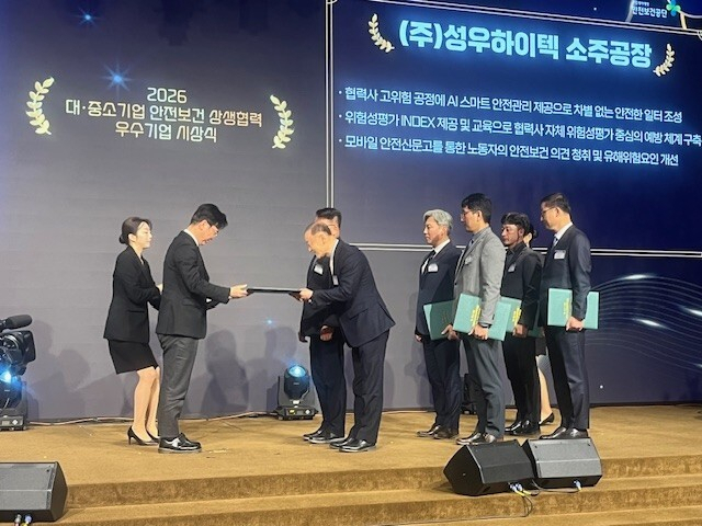 성우하이텍은 2월 25일 서울 피스앤파크컨벤션에서 열린 2026년 ‘대·중소기업 안전보건 상생협력사업’ 협약식에서 2년 연속으로 우수기업에 선정되었다.