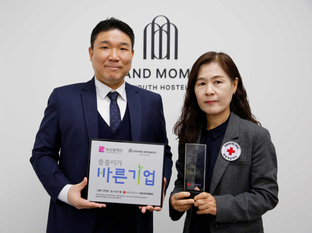 대한적십자사 부산지사(회장 구정회)는 최근 그랜드모먼트 유스호스텔(대표이사 김도환)이 대한적십자사 부산지사 ‘씀씀이가 바른기업 캠페인’에 동참해 지역사회 취약계층과 재난 구호활동 지원을 위한 지속적인 후원에 참여하고 있다고 밝혔다.