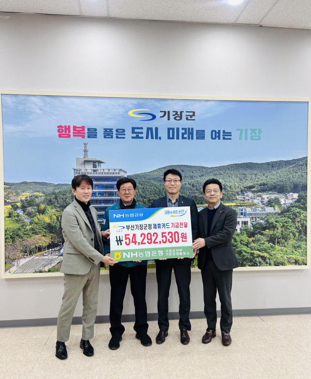 농협 기장군지부(지부장 한상섭)는 지난 10일 농협은행 기장군청출장소에서 2025년 제휴카드 적립기금 5420만 원을 기장군에 전달했다.