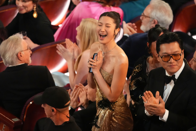 15일(현지 시간) 미국 로스앤젤레스에서 열린 제98회 아카데미 시상식에서 ‘케데헌’ OST ‘골든’의 가수 겸 공동 작사·작곡가인 이재가 장편 애니메이션상 발표를 듣고 기뻐하고 있다. 이날 ‘케이팝 데몬 헌터스’는 미국 아카데미 시상식에서 장편 애니메이션상과 주제가상을 받았다. ▶관련 기사 2면 AP연합뉴스