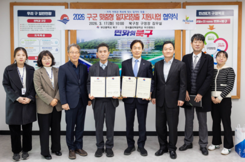 한국폴리텍대학 부산캠퍼스(학장 김현환)는 17일 북구청과 ‘2026 구·군 맞춤형 일자리창출 지원사업’수행 협약식을 가졌다고 밝혔다.