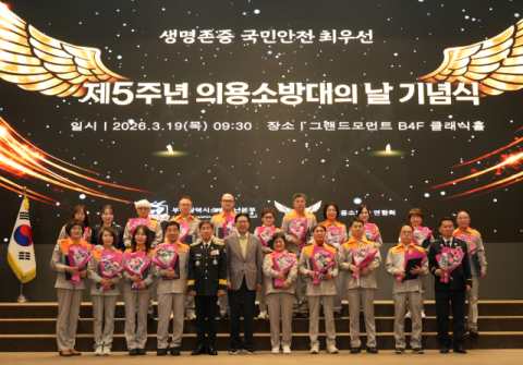 부산소방재난본부(본부장 김조일)는 19일 부산 그랜드모먼트에서 박형준 부산광역시장, 안성민 부산광역시의회 의장, 부산광역시의회 해양도시안전위원회 위원 등 주요 내빈과 의용소방대원 등이 참석한 가운데 ‘제5주년 의용소방대의 날 기념식’을 개최했다고 밝혔다.