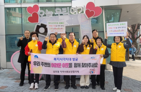 부산 중구 남포동 지역사회보장협의체(민간위원장 유진모, 공공위원장 노태화)는 19일 복지 사각지대에 놓인 소외된 이웃을 찾고 지역 주민들의 관심을 높이기 위해 관내 일원에서‘복지 사각지대 발굴 캠페인’을 실시했다고 전했다.