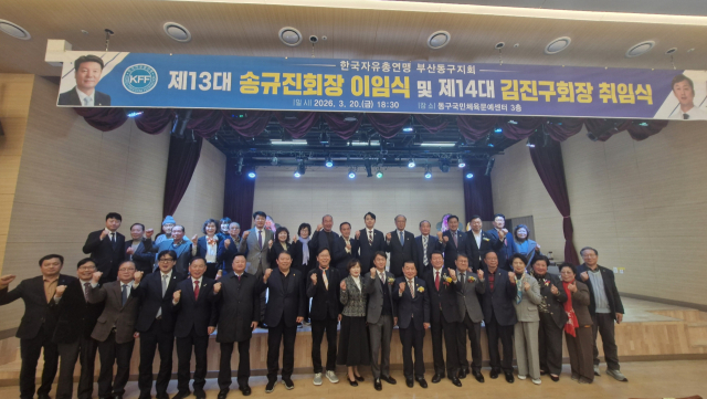 한국자유총연맹 부산동구지회(회장 김진구)는 지난 20일 동구국민체육문예센터에서 제13·14대 지회장 이취임식을 개최했다.