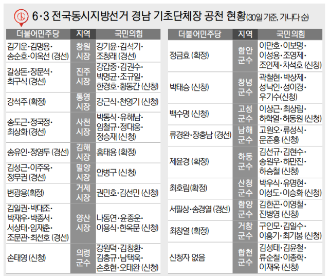 6·3 경남 기초단체장 선거 대진표 윤곽