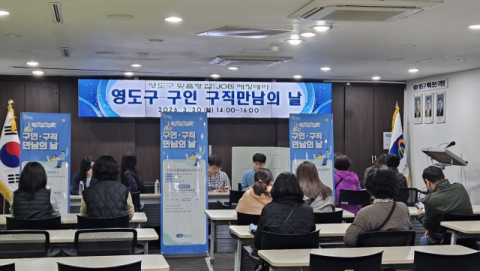 부산 영도구(구청장 김기재)는 지난달 30일 영도구청 대회의실에서 지역 고용 활성화와 구인·구직난 해소를 위해 개최한 ‘구인·구직 만남의 날’ 행사를 성황리에 마무리했다고 밝혔다.