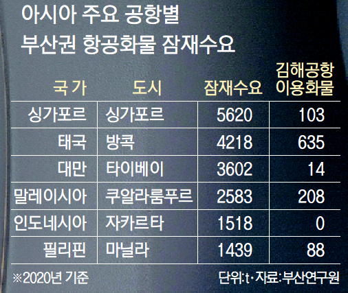 부산연구원도 ‘2020년 부산권 항공화물수요 조사분석’에서 부산~자카르타 노선 항공화물의 잠재수요를 높게 평가하면서 부산 직항이 개설되면 인천공항을 이용하는 자카르타 노선 화물수요의 상당수가 부산 김해공항으로 전환될 것으로 예상했다.