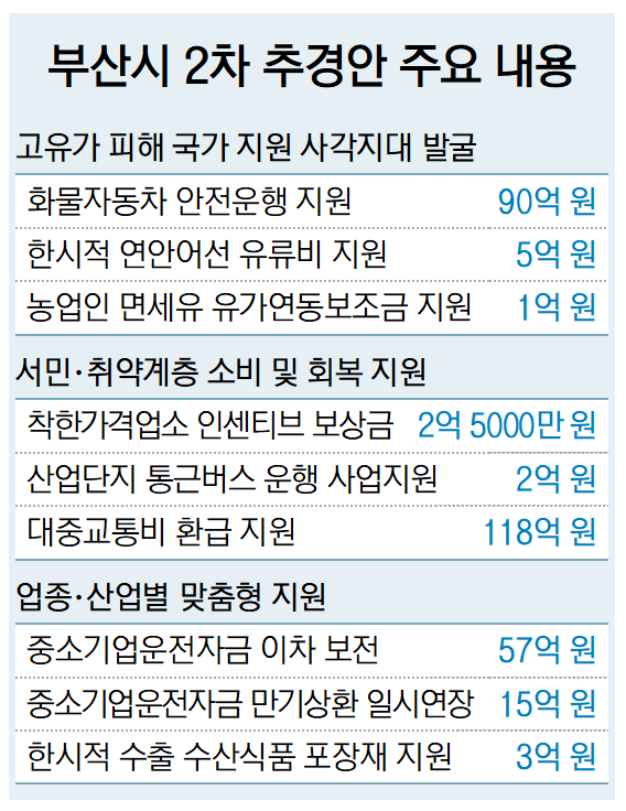 부산시가 고유가 충격에 대비해 5508억 원 규모의 제2회 추가경정예산을 편성했다.
