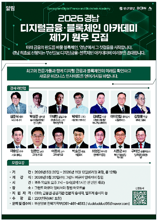 [알림] 2026 경남 디지털금융·블록체인 아카데미 제1기 원우 모집