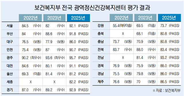 속보=보건복지부가 전국 광역정신건강복지센터 평가를 엉터리로 진행하며 부실한 인력 실태를 장기간 방치한 것으로 확인됐다. 부산과 경남 등 위기개입팀 전문인력이 현저히 부족한 광역센터에도 전문성 평가 항목에서 만점을 남발하고, 전문기관 용역 결과마저 무시한 채 입맛대로 평가 잣대를 바꾼 사실도 드러났다. 정부가 사실상 ‘가짜 성적표’로 국가 정신응급 안전망의 취약한 인력 실태를 가리고 있다는 비판이 나온다.