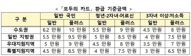 대신에 플러스형은 환급기준 금액이 껑충 올라간다. 지방에서는 플러스형 환급기준 금액이 9만 5000원이다. 한달에 9만 5000원을 넘겨 사용해야 초과분을 돌려받는 것이다.
